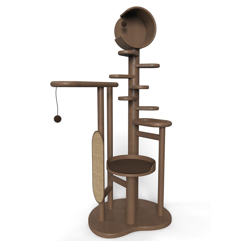 4. Đồ chơi treo: Một số tháp cây cho mèo còn được trang bị đồ chơi treo, chẳng hạn như quả bóng nhỏ hoặc quả bóng bông, để thu hút sự chú ý của mèo và tăng thêm niềm vui cho các hoạt động và giải trí của chúng.