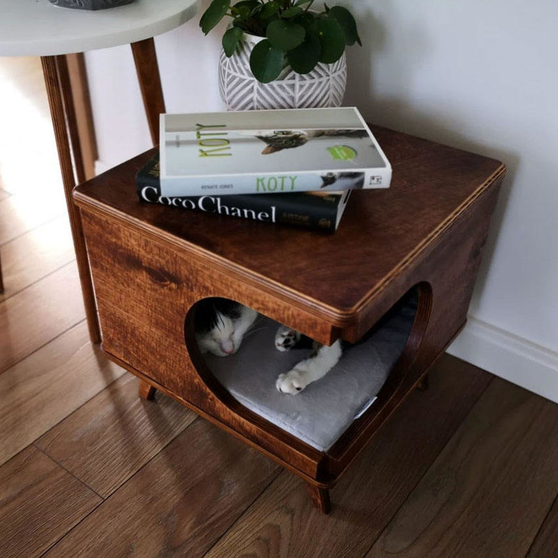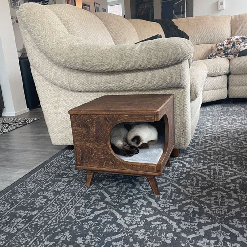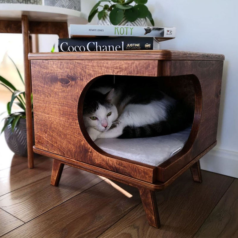 Bàn nội thất cho thú cưng Gỗ Cat House Hộp gỗ ấm cúng cho mèo