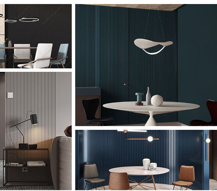 Trang trí tường nội thất: Tấm tường phù hợp để trang trí tường nội thất.Lưới tản nhiệt gỗ màu đen cổ điển mang lại hiệu quả trang trí thanh lịch và cổ điển, tăng thêm vẻ đẹp độc đáo cho không gian nội thất.Kết cấu của các rãnh sợi tre bằng gỗ-nhựa làm cho bức tường có kết cấu hơn và không khí cao cấp hơn, làm cho toàn bộ không gian nội thất trở nên trang nhã hơn.