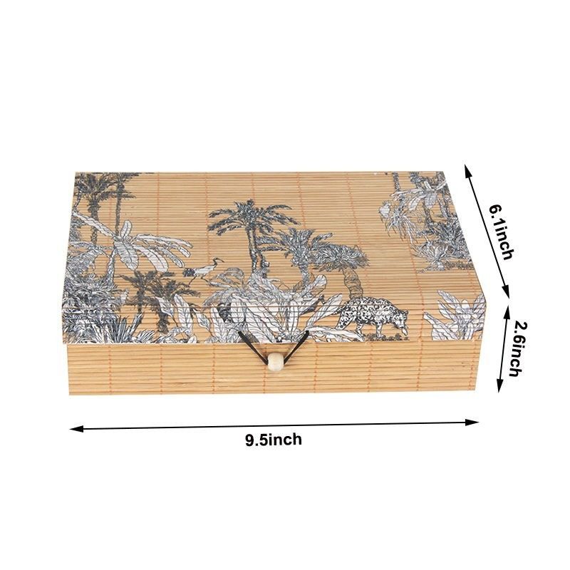 Gỗ chất lượng cao và trang trí nắp tre tinh tế làm cho mỗi hộp gỗ thể hiện sự kết hợp hoàn hảo giữa phong cách Trung Quốc thanh lịch và tiện ích hiện đại.Cho dù được sử dụng để trang trí nhà ở Trung Quốc, đóng gói quà tặng truyền thống, bộ sưu tập quà lưu niệm quan trọng hoặc lưu trữ đồ trang sức, nắp tre hộp gỗ cổ điển của Trung Quốc có thể cho bạn thấy sự kết hợp hoàn hảo giữa truyền thống và hiện đại.Chọn chiếc hộp gỗ này để làm cho không gian sống của bạn tràn đầy nét quyến rũ truyền thống mạnh mẽ của Trung Quốc, đồng thời cung cấp khả năng lưu trữ và bảo vệ có giá trị cho những vật có giá trị của bạn.Hãy để hộp gỗ và nắp tre cổ điển Trung Quốc trở thành lựa chọn lưu trữ đặc biệt trong cuộc sống của bạn, thể hiện tình yêu và sự kế thừa văn hóa truyền thống của bạn.